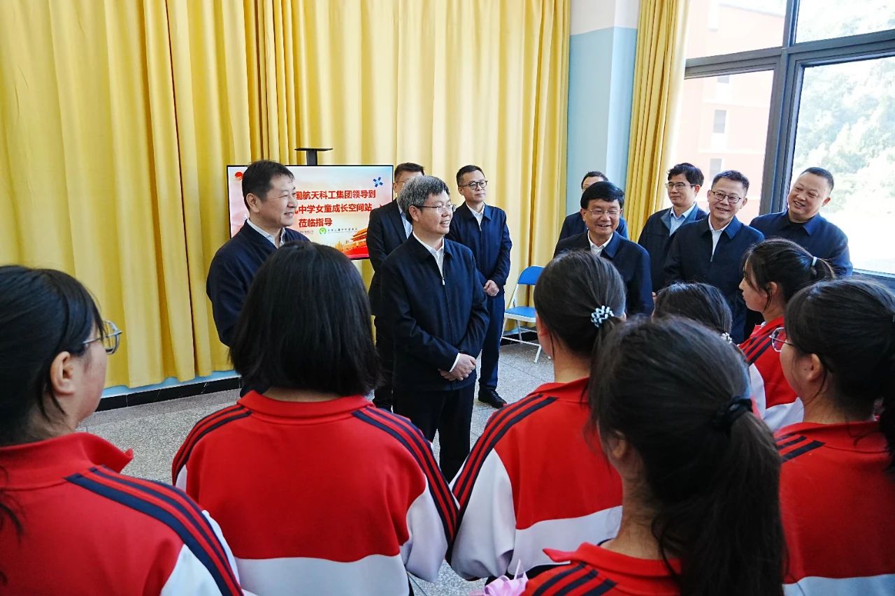 隨后,陳錫明一行前往富源縣第九中學,調研航天·筑夢“春蕾計劃”公益項目。為積極響應“春蕾計劃—夢想未來”行動提升推進工作倡議,2022年,航天科工攜手全國婦聯、中國兒基會共同發起航天·筑夢“春蕾計劃”公益項目。該項目將于2023-2025年在東川區、富源縣兩地實施,通過為困難家庭女童提供學業資助、建設女童成長空間站、組織女童到航天科工相關單位開展社會實踐、邀請女科技工作者開展成長指導服務等,助力女童健康成長、全面發展。截至目前,航天·筑夢“春蕾計劃”公益項目已經在東川區和富源縣的中小學校建成20個航天·筑夢女童成長空間站,開展女童科技素養提升、青春期健康教育、心理健康輔導等關愛服務活動200余場次,惠及女童及家庭約10萬人次。