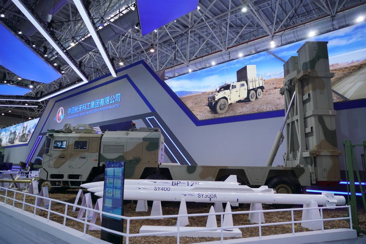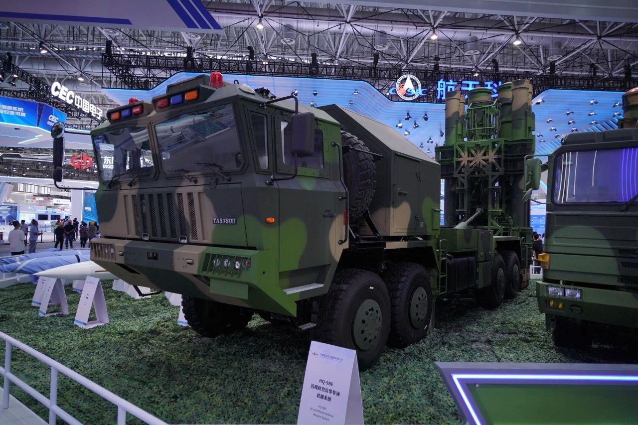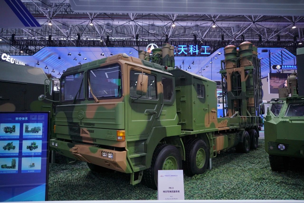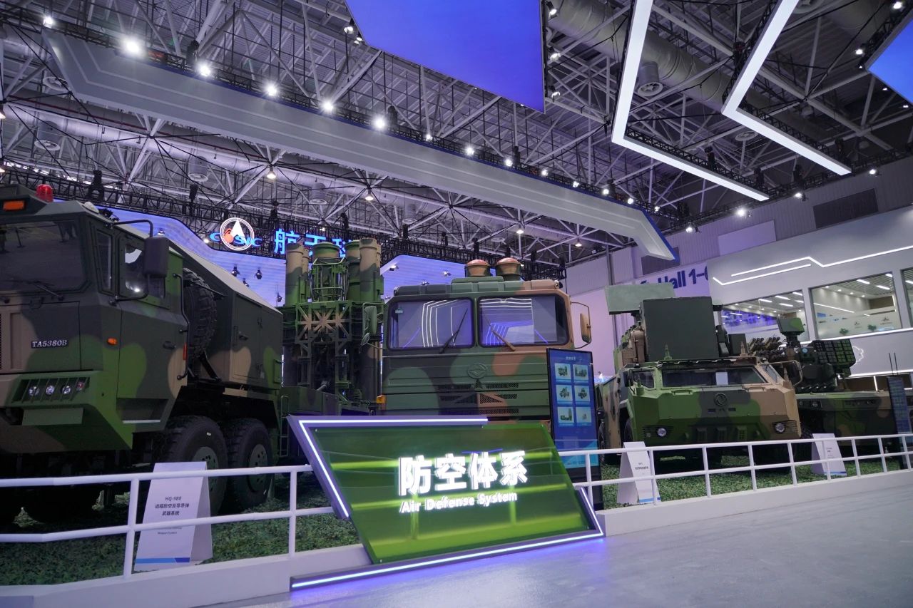 在中國(guó)航天科工集團(tuán)有限公司防空體系展區(qū),HQ-9BE遠(yuǎn)程防空武器系統(tǒng)、FD-2000A中遠(yuǎn)程防空武器系統(tǒng)、FK-3中遠(yuǎn)程防空武器系統(tǒng)、HQ-17AE近程防空武器系統(tǒng)等“明星裝備”煥新亮相。