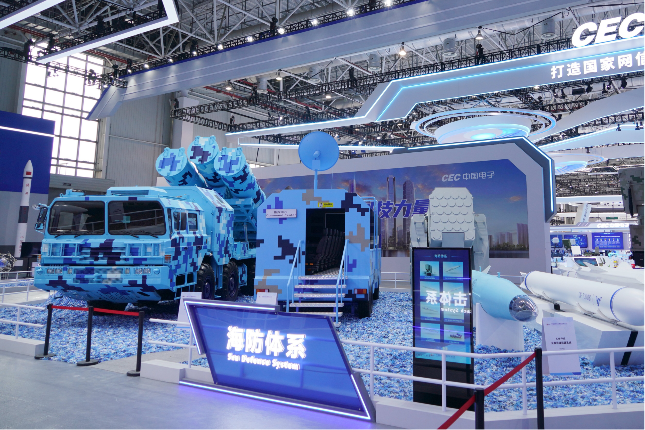 信息化條件下的現(xiàn)代戰(zhàn)爭(zhēng)不僅是武器系統(tǒng)之間的火力比拼,更是體系與體系的對(duì)抗。本次展出的海防體系由指揮控制系統(tǒng)、預(yù)警探測(cè)系統(tǒng)、火力打擊、通信系統(tǒng)和保障系統(tǒng)組成,將各種高性能的海防利器通過信息化手段組成一個(gè)互聯(lián)互通、相互配合的打擊體系,能夠提供遠(yuǎn)、中、近程全方位的對(duì)海防御解決方案。