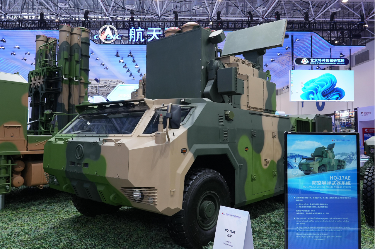在防空體系展區(qū),HQ-9BE遠(yuǎn)程防空武器系統(tǒng)、FD-2000A中遠(yuǎn)程防空武器系統(tǒng)、FK-3中遠(yuǎn)程防空武器系統(tǒng)、HQ-17AE近程防空武器系統(tǒng)等“明星裝備”煥新亮相。