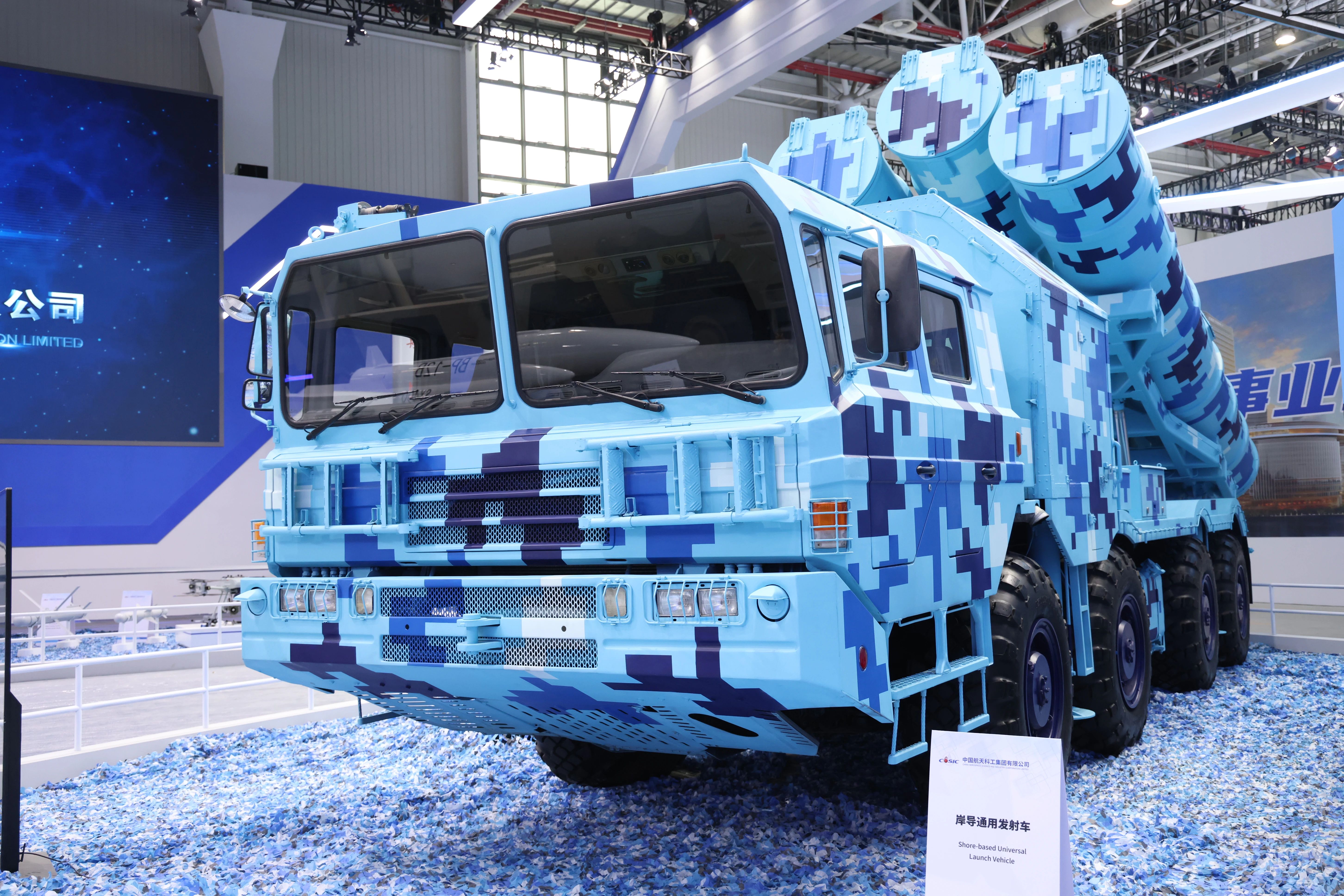 岸導(dǎo)通用發(fā)射車可作為YJ-12E、CM-802B、CM-103等各型岸艦導(dǎo)彈的發(fā)射平臺(tái),具有良好的機(jī)動(dòng)性及越野性能。集裝箱發(fā)射單元采用標(biāo)準(zhǔn)集裝箱隱蔽外形,可靈活布置在艦船、拖車、野外固定陣地等多種場(chǎng)地,具有隱蔽性強(qiáng)、通用化程度高、部署靈活等特點(diǎn),可有效補(bǔ)充現(xiàn)有平臺(tái)作戰(zhàn)能力。