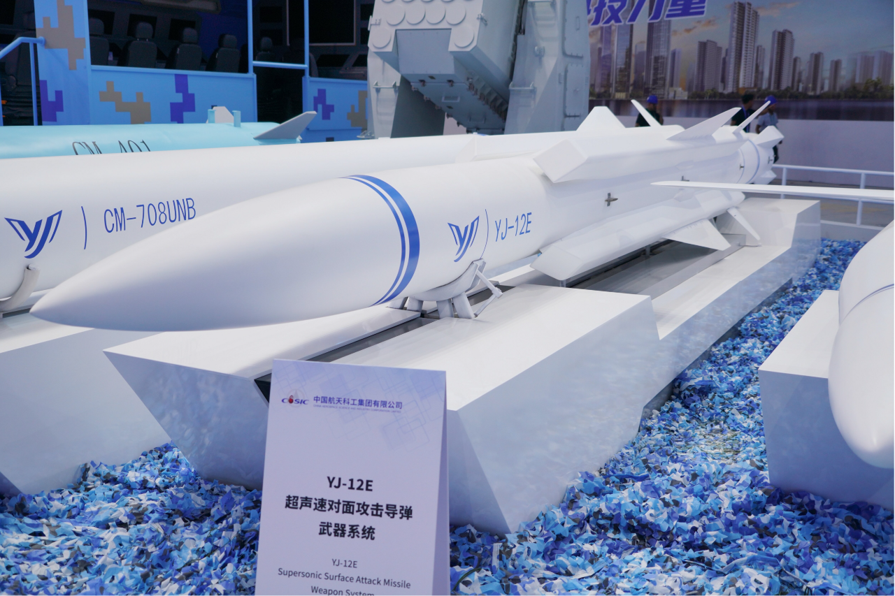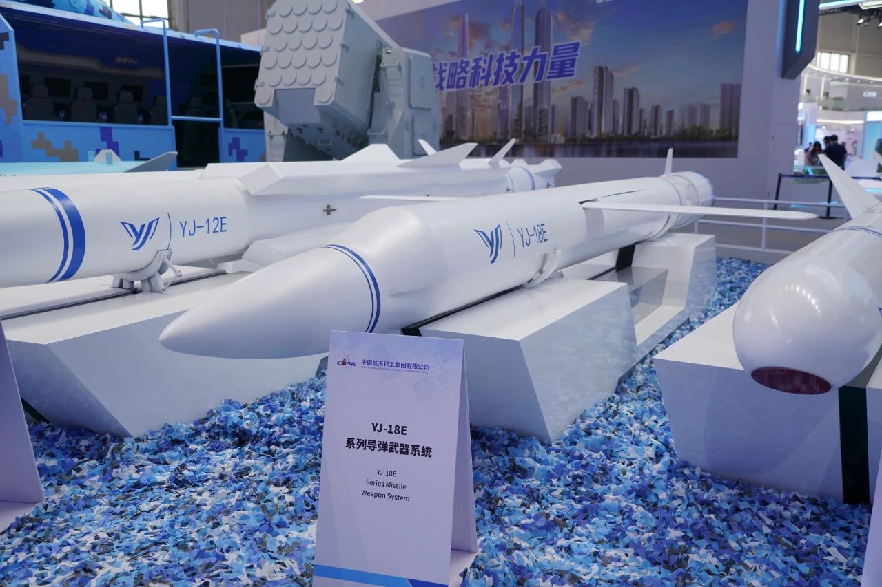在第十五屆中國(guó)國(guó)際航空航天博覽會(huì)上,中國(guó)航天科工集團(tuán)有限公司展出了一體化海防武器系統(tǒng),YJ-12E、YJ-18E、CM-708UNB、CM-401等多款“明星裝備”組合亮相。