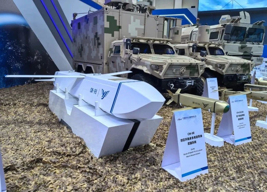 其中,CM-98隱身多用途導(dǎo)彈、CM-502X單兵巡飛攻擊導(dǎo)彈均為首次亮相。CM-98是根據(jù)國(guó)際市場(chǎng)需求研制的一型隱身多用途導(dǎo)彈武器系統(tǒng),可在防區(qū)外遂行打擊對(duì)方高價(jià)值目標(biāo),具有全天時(shí)、全天候使用,高隱身穿透、抗干擾突防、寬飛行包絡(luò)、高效能毀傷、易于維護(hù)保障等特點(diǎn)。CM-502X能夠高效打擊重型主戰(zhàn)坦克,具有靈巧打擊、多模式簡(jiǎn)易發(fā)射等特點(diǎn)。