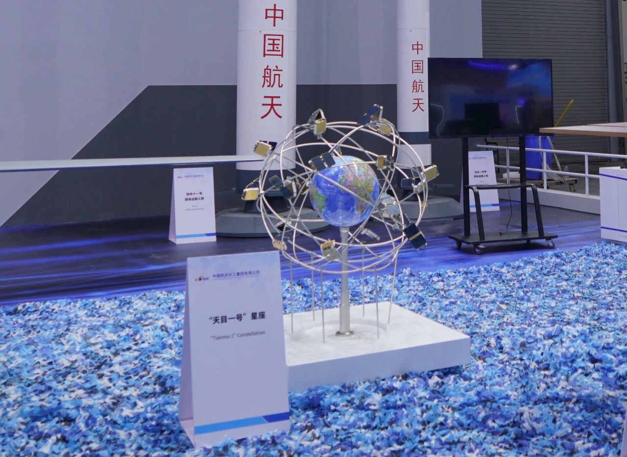 中國(guó)航天科工集團(tuán)有限公司商業(yè)航天體系展臺(tái)星箭齊聚,快舟系列運(yùn)載火箭、“楚天星座”、“天目一號(hào)”星座、“天鯤”和“天鷹”系列衛(wèi)星平臺(tái)等紛紛亮相。