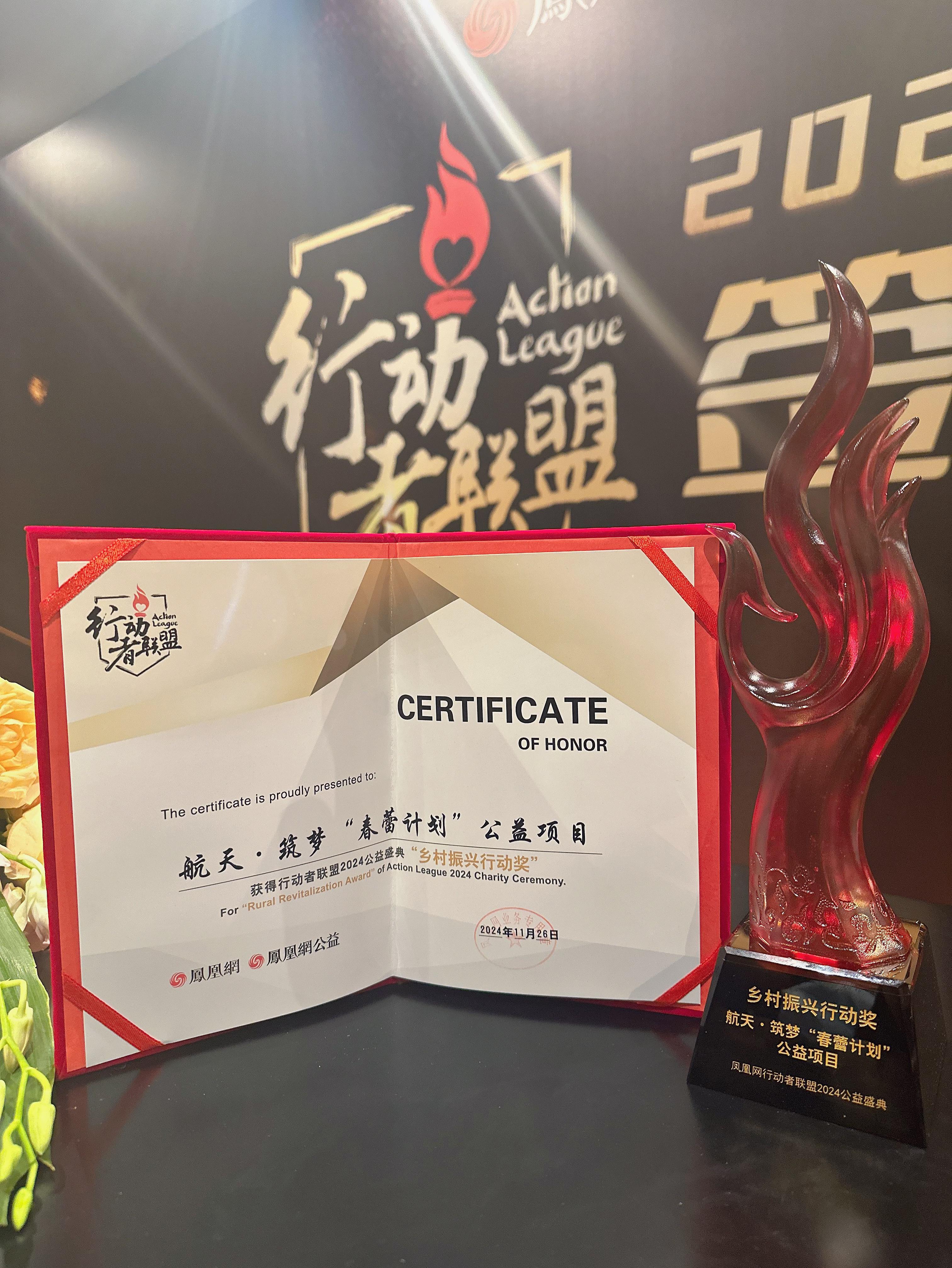 近日,鳳凰網(wǎng)行動者聯(lián)盟2024公益盛典在京舉辦,現(xiàn)場揭曉了多個年度公益榮譽。航天·筑夢“春蕾計劃”公益項目榮獲“鄉(xiāng)村振興行動獎”。