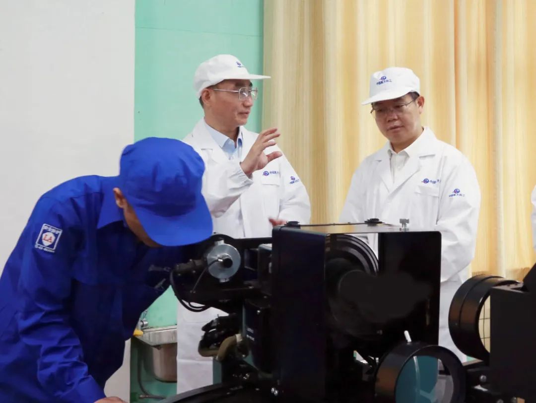 在工作調研期間,陳錫明一行聽取公司發展情況匯報,對涉及創新項目方向、科研生產瓶頸、職工群眾生活狀況等進行交流,深入一線車間、班組,現場了解裝備產品化、去手工化以及生產、測試、檢驗能力建設情況,與現場一線人員親切交談,肯定了公司取得的成績,并對后續工作提出3方面要求: