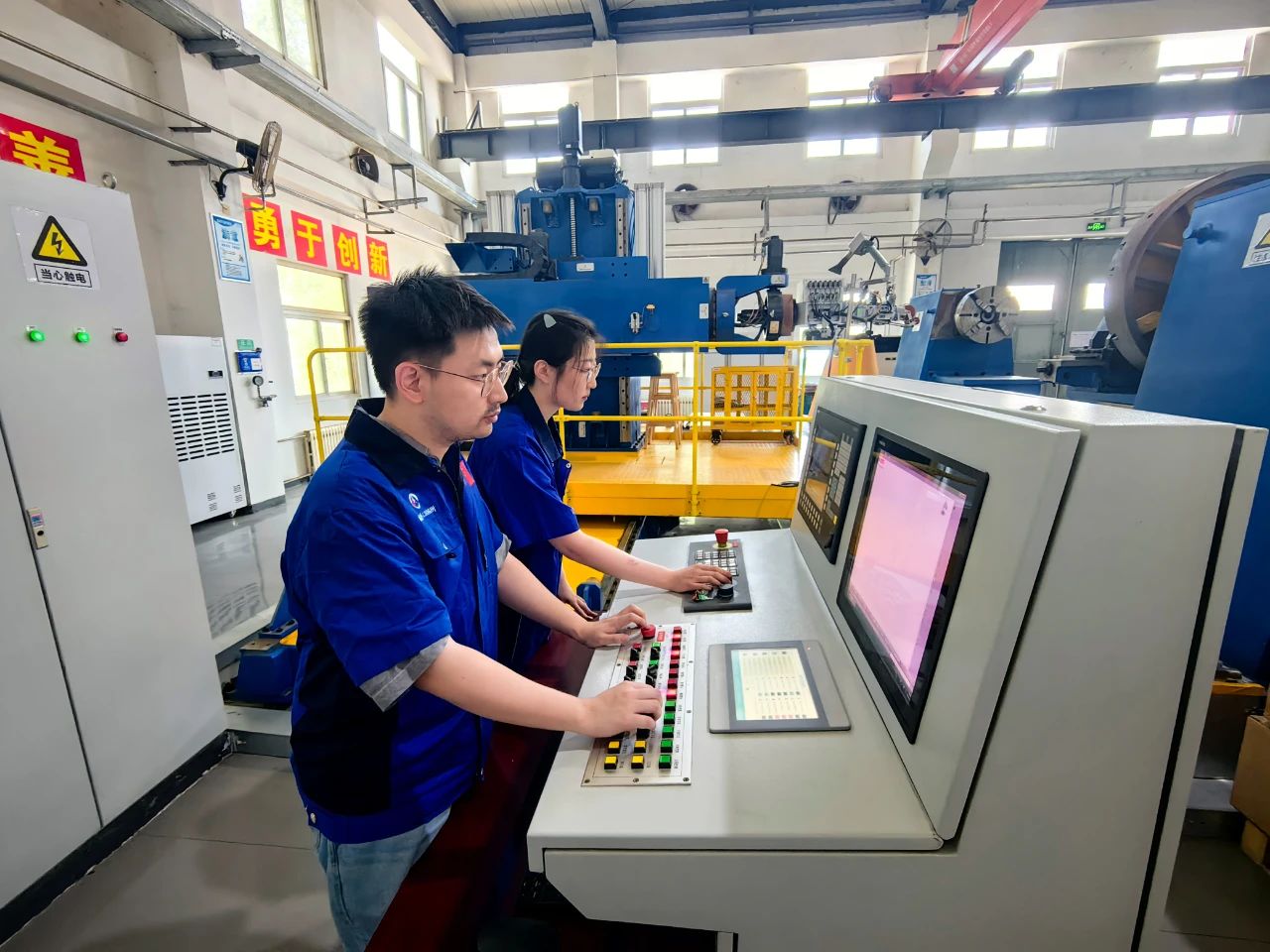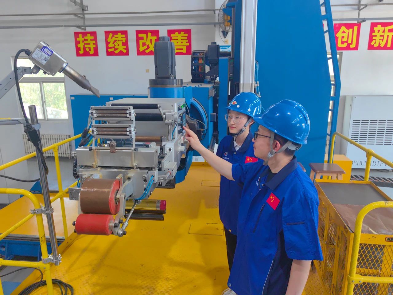 “小金豬”也的確不讓人省心。有一次,材料還在高溫成型過程中,用來給設備做冷卻的水箱突然不上水了。溫度如果降不下來,別說是“小金豬”,養豬的家伙什兒都得一起沒了!聽到報警,芳姐趕緊啟動應急措施,招呼大家伙兒人工降溫,確保安全。“我們當時七八個人,一起給冷卻水箱人工注水,用了將近一個小時,溫度總算是控制住了。”