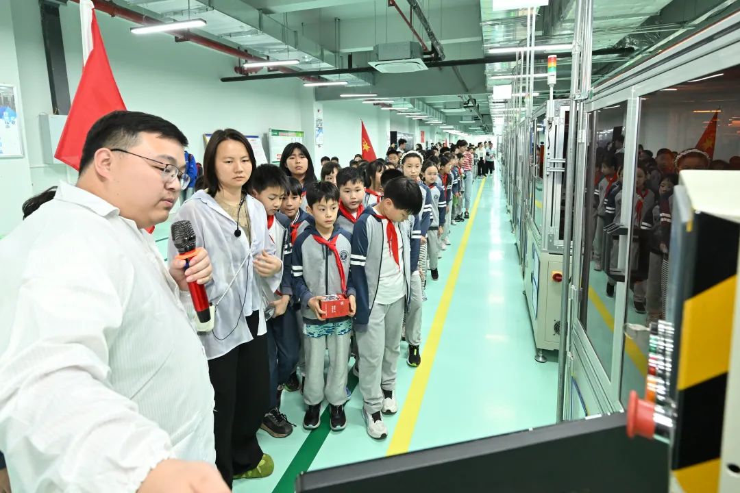 現(xiàn)場科普結(jié)束后,學(xué)生們依次進(jìn)入十院航天電器麻花針智能制造車間參觀。