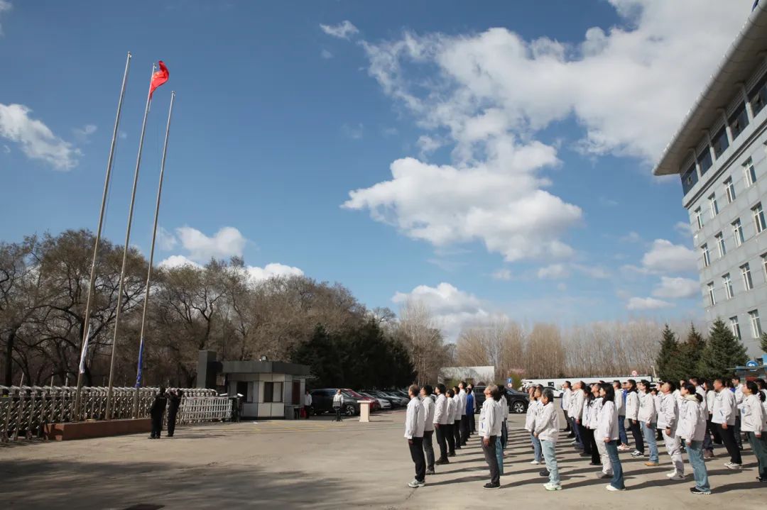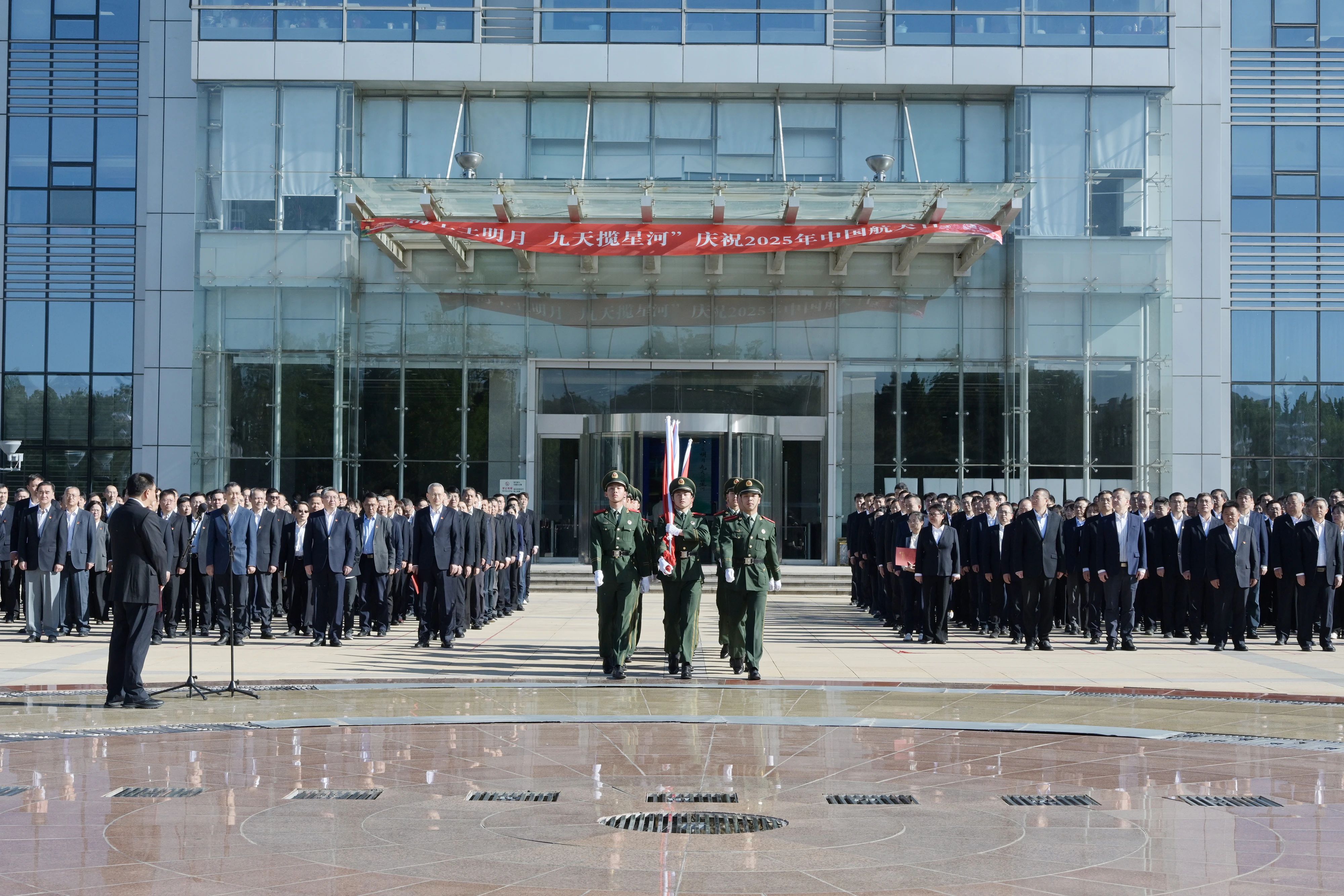 8點30分,國旗護衛隊邁著鏗鏘有力的步伐,護送鮮艷的五星紅旗,昂首闊步走向升旗臺。伴隨著雄壯的國歌和航天科工之歌,國旗、集團公司司旗和三院院旗冉冉升起,在場干部職工莊嚴肅立,行注目禮。