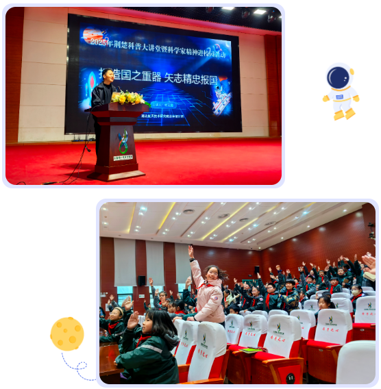 九部團委組織航天科普講師團先后走進三角湖小學(新華校區)等4所學校,開展航天科普講座等活動。每次講座主題各具特色,《打造國之重器 矢志精忠報國》展現航天人報國決心;《為國鑄劍 叩問九天》歌頌航天人探索征程;《快小舟航天課堂》打開航天知識大門。通過講解,學生們在生動故事中感受中國航天輝煌歷史與航天英雄風采,領悟航天精神內涵。