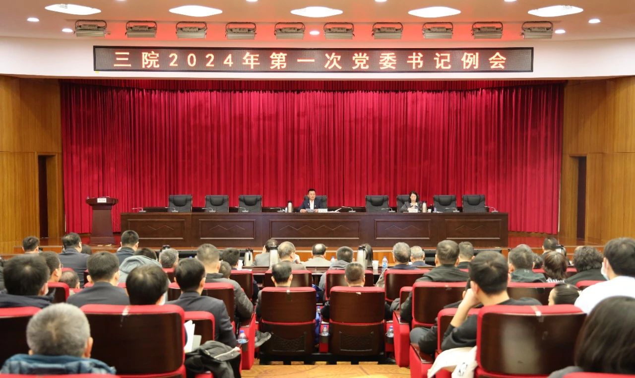 會議對三院2023年四季度黨建工作進行全面總結點評,并對2024年一季度重點工作進行部署安排。