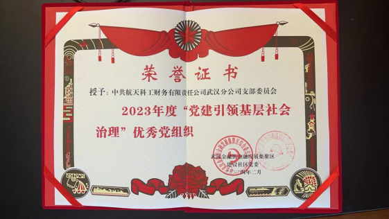分公司黨支部長(zhǎng)期堅(jiān)持以人民為中心的發(fā)展思想,以實(shí)際行動(dòng)履行社會(huì)責(zé)任,積極為和諧社會(huì)貢獻(xiàn)航天力量,被武漢金融街金融發(fā)展集聚區(qū)建設(shè)社區(qū)黨委授予2023年度“黨建引領(lǐng)基層社會(huì)治理”優(yōu)秀黨組織榮譽(yù)稱號(hào)。(文/李強(qiáng))