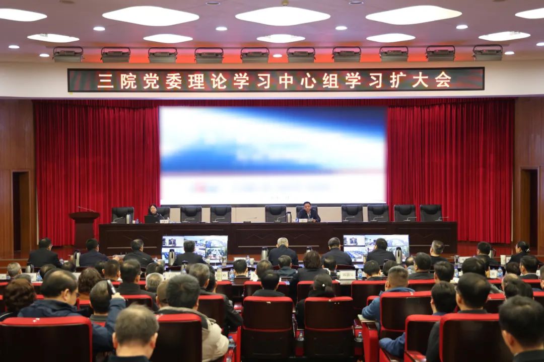 三院全體在家院領導、型號“兩總”、本部各部門負責人,院屬各單位黨政主要領導,部分單位領導班子成員、本部相關部門負責人等共400余人在主會場和視頻分會場參加了學習。三院黨委書記施毅、副院長(主持工作)程進分別主持黨委理論中心組學習擴大會、宣講培訓并講話。