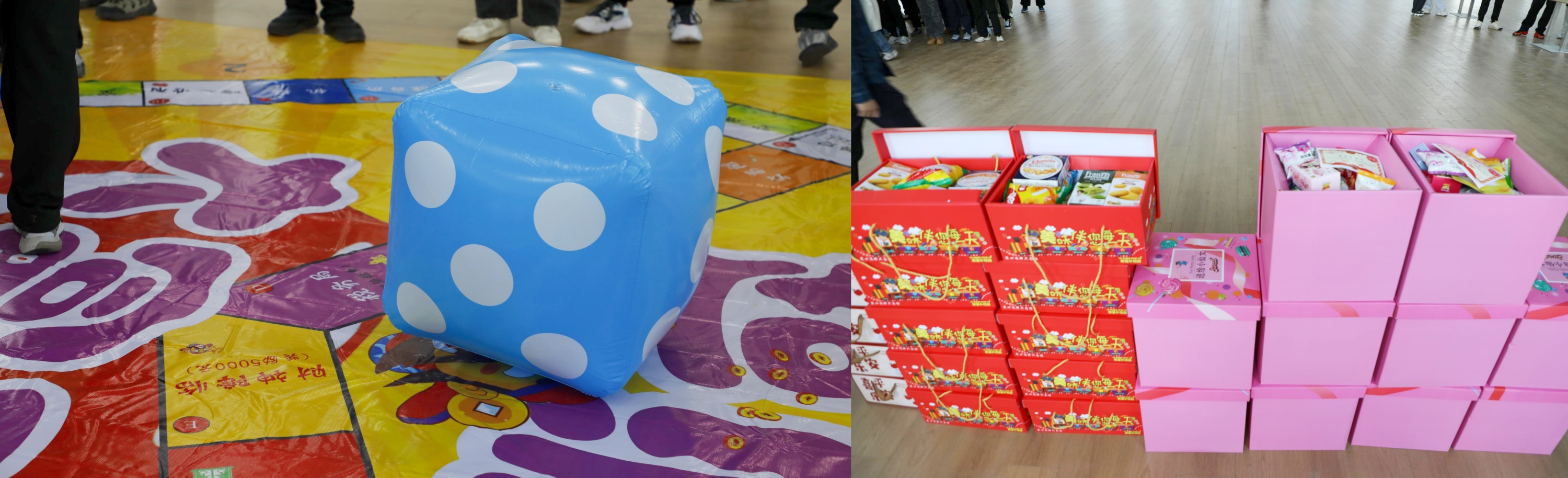 活動現場搭建巨型游戲棋盤,青年們化身各路玩家,通過擲骰子、賺金幣、開盲盒解鎖趣味十足的任務。青年們分組協作,共同解鎖游戲中的各種挑戰。頭頂上方旋轉的骰子開盲盒般地“挑選”任務窗格,大家群策群力破解任務。5支隊伍在追逐中一步步接近終點,“友誼金幣”在不經意間越壘越高,默契值也在一次次互動中不斷增長。